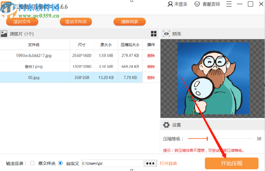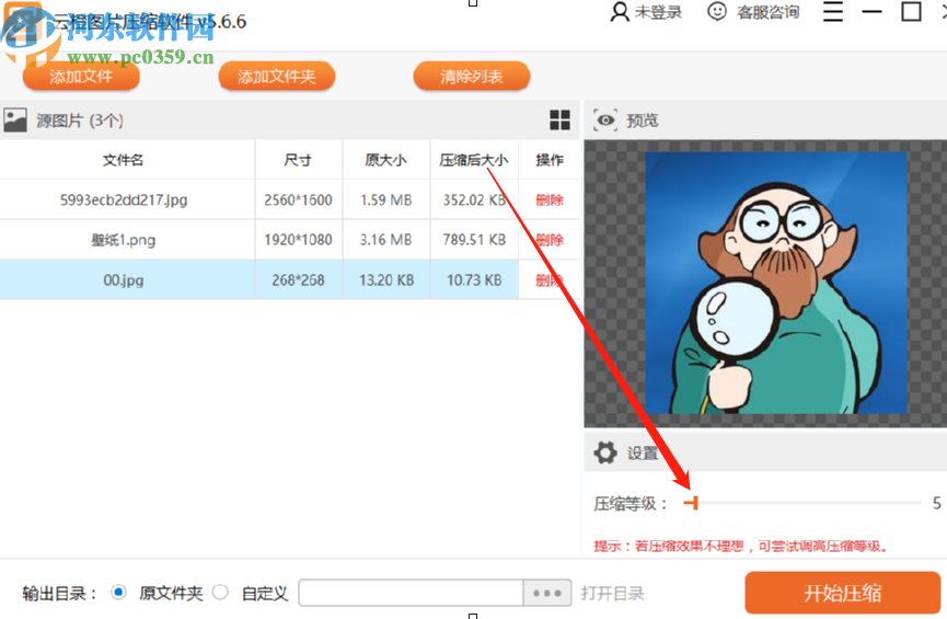 3.点击确定按钮之后下一步就会打开软件界面了,在界面中有已经添加的图片文件,然后我们在界面的右下角可以设置压缩等级。