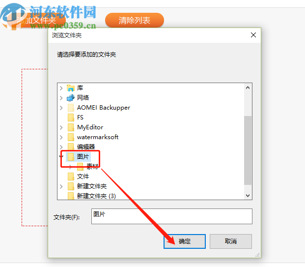 2.点击添加文件夹按钮之后紧接着就打开选择文件夹的界面了,在这个界面中我们选中要压缩的图片所在的文件夹,选中之后点击右下角的确定按钮。