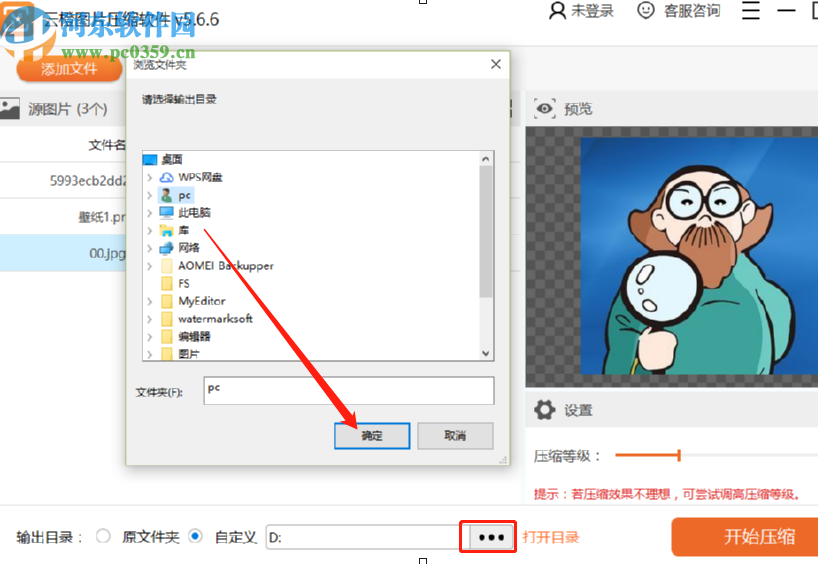 4.点击设置了压缩等级之后,下一步就是在输出目录的位置选择自定义目录,然后点击三点按钮来自定义选择压缩图片的输出目录。