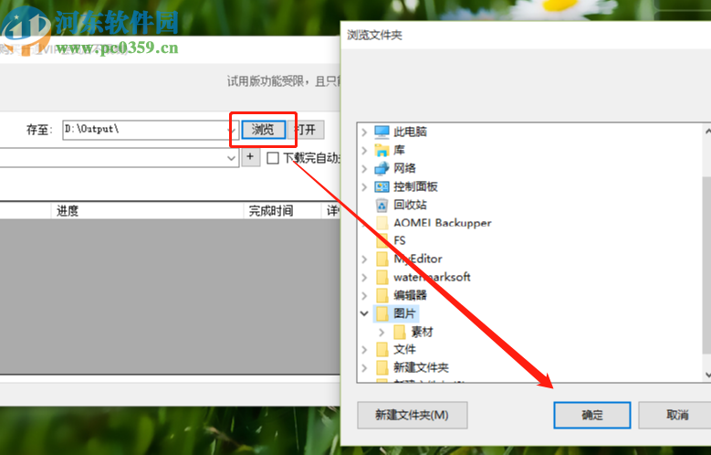 2.网站类型选择完成之后,下一步是点击界面右边的浏览按钮,点击这个浏览按钮之后可以在打开的选项中选择图片下载保存的文件夹。