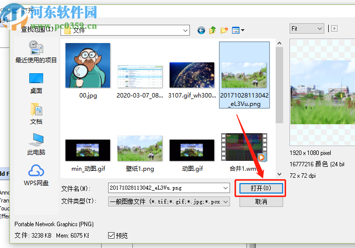 2.点击添加按钮之后接着会打开一个选择文件的界面,在其中选中要添加水印的文件之后点击打开按钮。