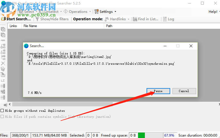 4.点击开始扫描之后,软件就会进入到扫描文件的状态了,如下图中所示,点击Pause按钮可以暂停扫描操作。
