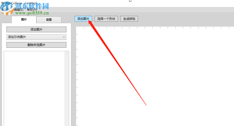 1.首先第一步我们打开软件之后,点击界面中的添加图片这个功能按钮,点击添加图片按钮之后添加要拼接的图片文件。