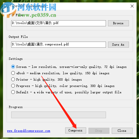 6.最后我们在选择好压缩模式以后,点击界面最下方的Compress按钮即可开始压缩PDF文件。