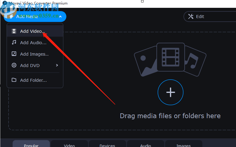1.首先第一步我们打开软件之后点击界面左上角的Add Media这个按钮,然后在出现的界面中选择点击Add Video这个添加视频的按钮。