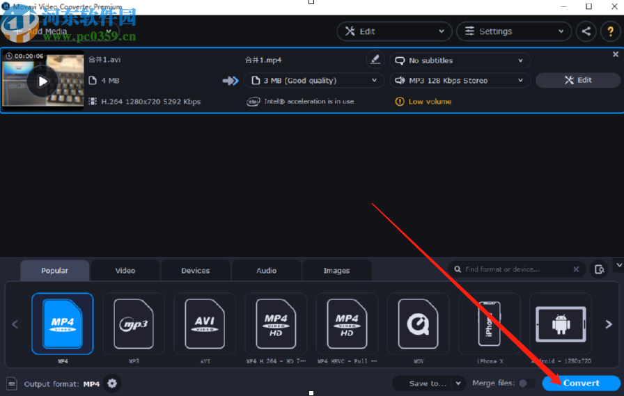 5.最后我们就会回到软件的主界面中,此时视频文件已经变成了我们想要剪切的那一个片段,然后我们点击右下角的Convert按钮即可将这个片段保存下来。