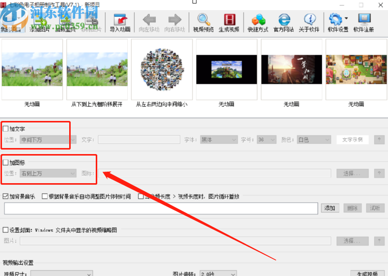 3.点击打开按钮之后图片就成功添加到软件中了,然后我们可以使用加文字、加图标这两个功能来编辑设计自己的相册。