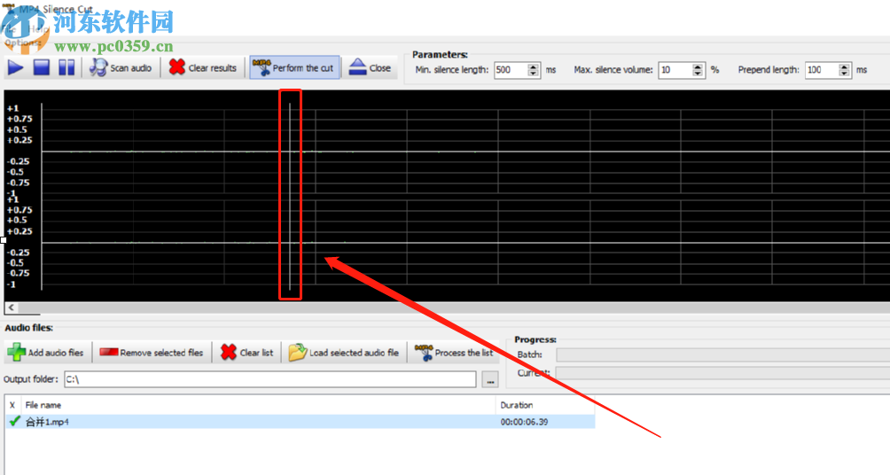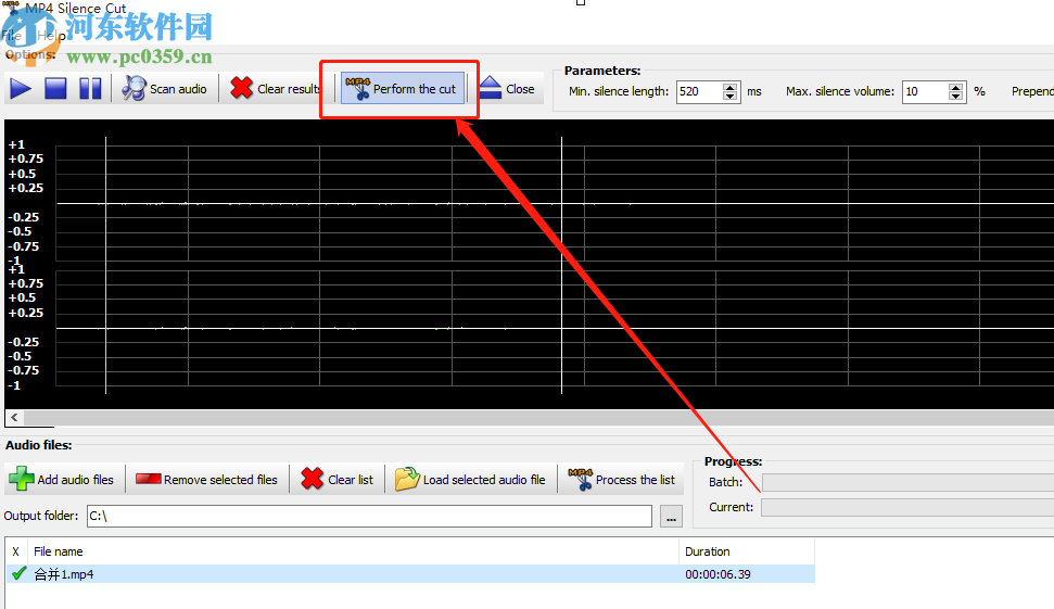 5.想要剪切的视频片段的时间位置调整完成之后,最后一步我们就可以点击界面上方的perform the cut按钮来开始执行这个剪切操作了。