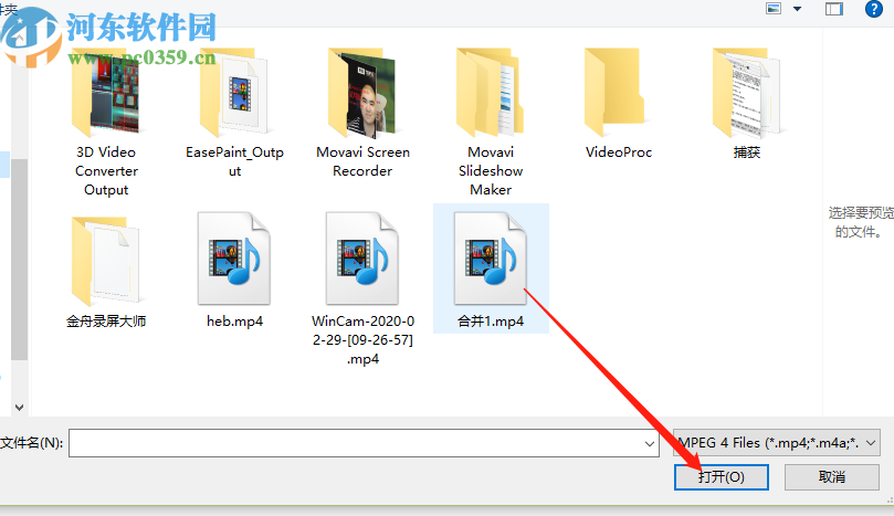 2.点击添加按钮之后下一步在出现的选择文件界面中,我们找到想要剪切的视频文件选中之后点击打开按钮。