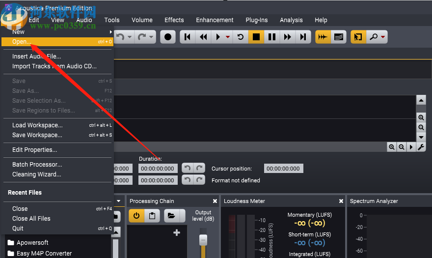 1.首先第一步我们打开软件之后在软件的主界面中点击File这个选项卡,点击之后在出现的选项中点击Open选项。