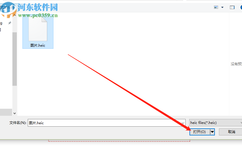 2.点击添加文件按钮之后,下一步就会打开选择文件的界面了,在这个选择文件的界面中我们选中目标heic文件之后点击打开按钮。