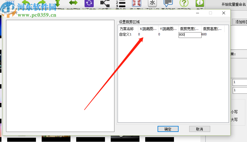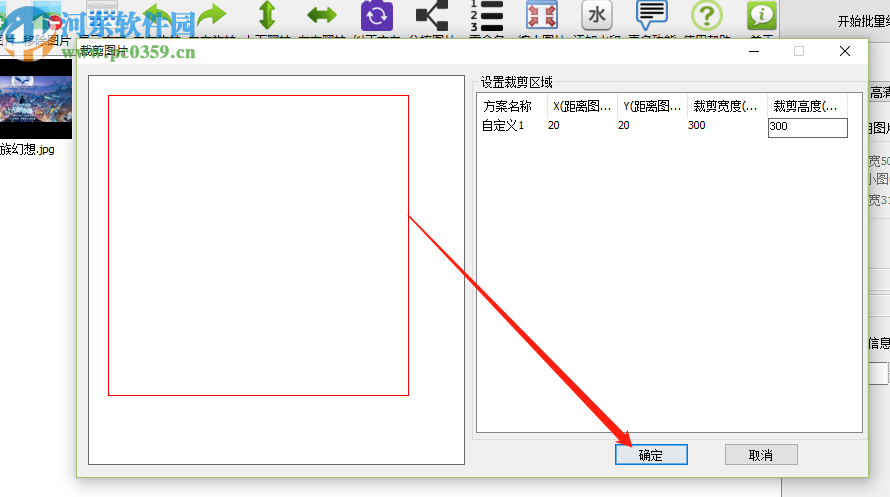 5.设置好裁剪区域之后我们在左边空白的地方可以看到图片裁剪之后的尺寸预览,点击右下角的确定按钮即可开始批量裁剪图片的操作。