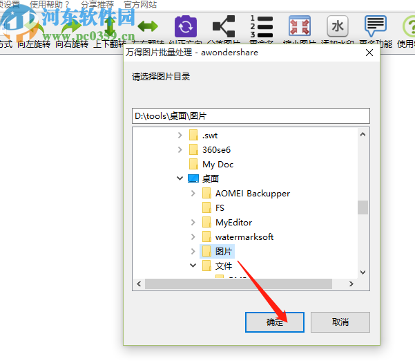 2.点击添加图片按钮之后紧接着就会出现一个选择文件目录的界面,我们选中图片所在的文件夹之后点击确定按钮将它打开。