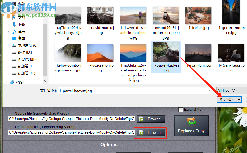 5.然后下一步就是点击第二个Browse浏览按钮,点击这个浏览按钮之后在打开的界面中选择想要替换的文件,然后点击打开。