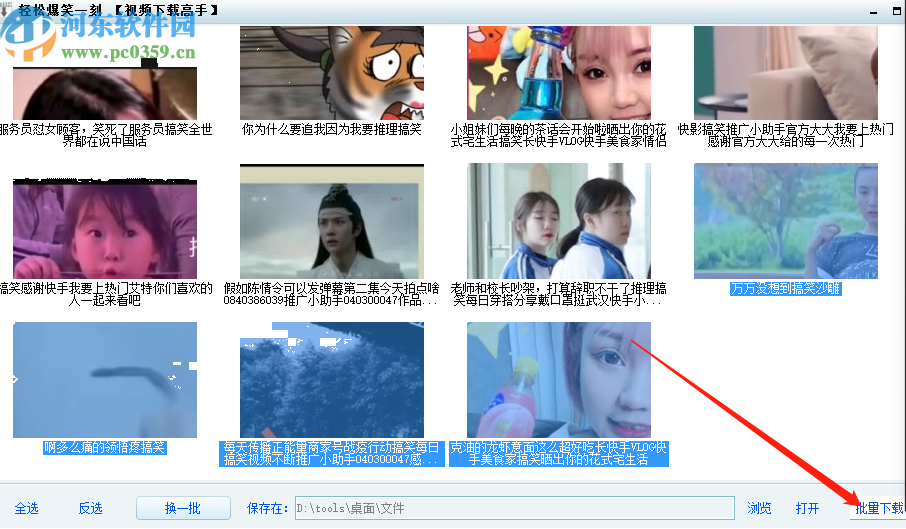 4.设置好储存位置之后我们就可以点击选中想要下载的视频文件,然后点击右下角的批量下载按钮进行下载了。