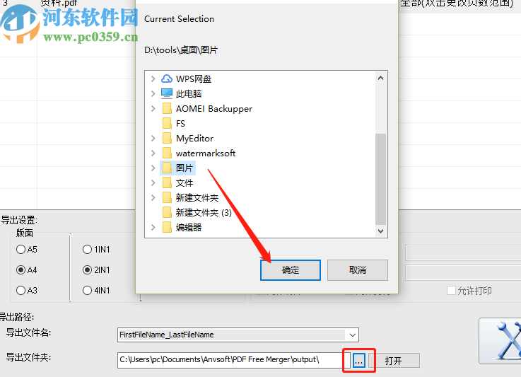 5.紧接着我们点击导出文件夹选项中的三点按钮,点击之后在出现的界面中选择输出路径之后点击确定按钮即可。