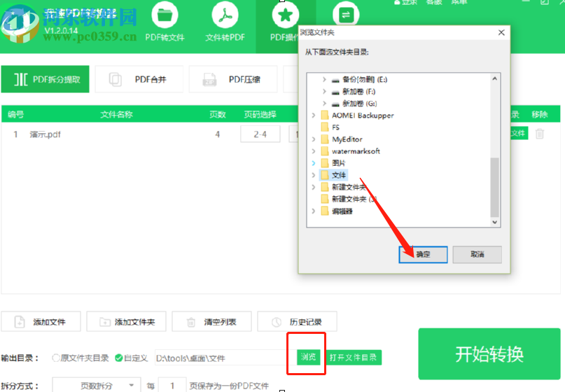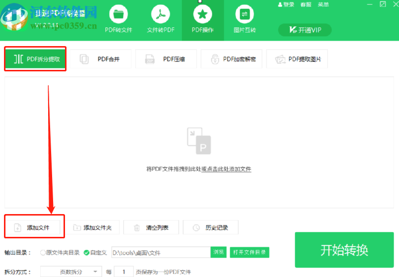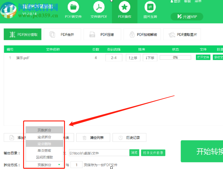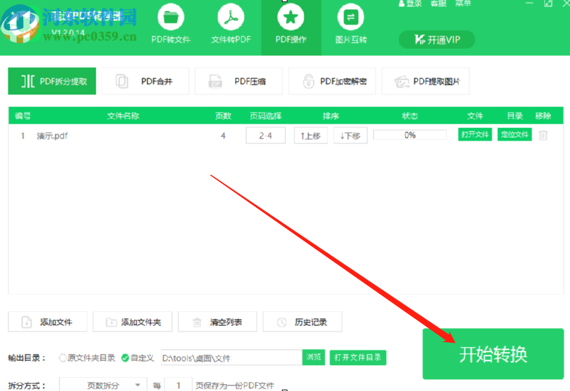 5.最后我们在设置好拆分文件的参数之后,点击界面右下角的开始转换这个功能按钮就可以开始拆分PDF文件的操作了。