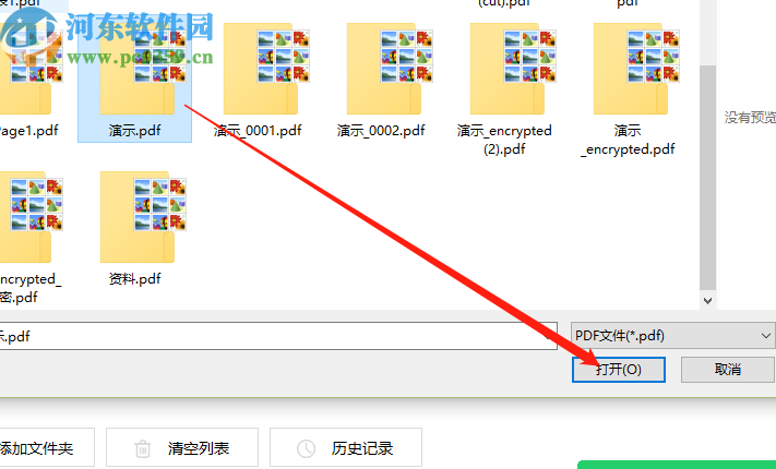 2.点击添加文件按钮之后紧接着会出现一个选择文件的界面,在这个界面中我们选择目标PDF文件之后点击打开按钮。