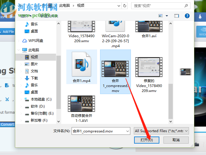 2.点击添加文件之后下一步就是在出现的界面中选择目标视频文件,选中之后点击界面右下角的打开按钮。