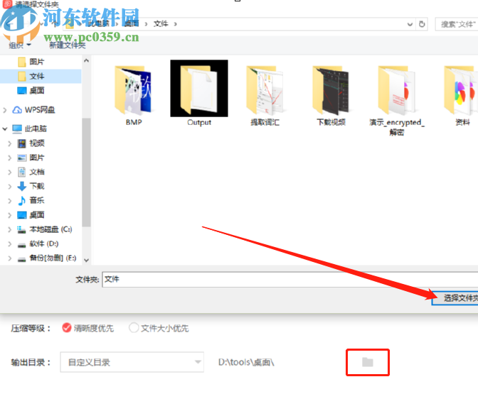 5.设置好压缩等级之后我们点击输出目录右边的文件夹图标可以自定义文件的输出路径,方便后续查看文件。