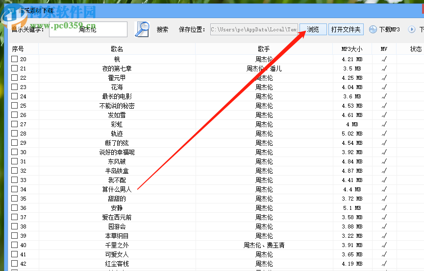 3.点击搜索之后等待一会界面中就会出现搜索到的一些相关歌曲了,然后我们点击上方的浏览这个功能按钮。