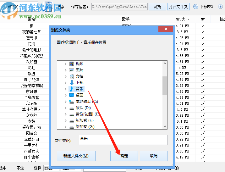 4.点击浏览按钮之后即可打开自定义文件输出位置的界面,在这里我们选择自己想要保存文件的路径之后点击确定按钮。