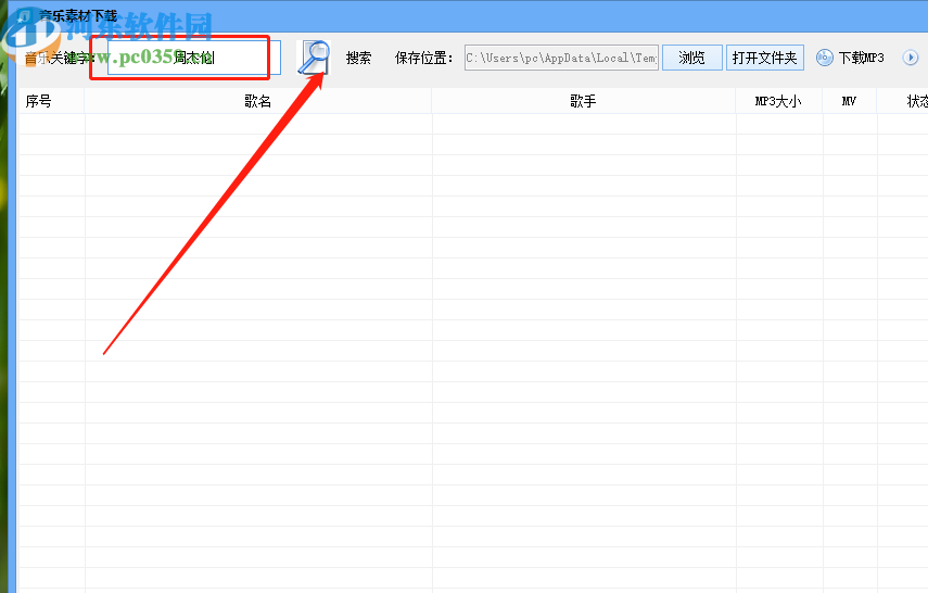 2.进入到音乐下载功能界面之后,我们在搜索关键字的位置输入想要下载的歌曲关键字,可以是歌曲名称或者是歌手的名称,输入之后点击搜索按钮。