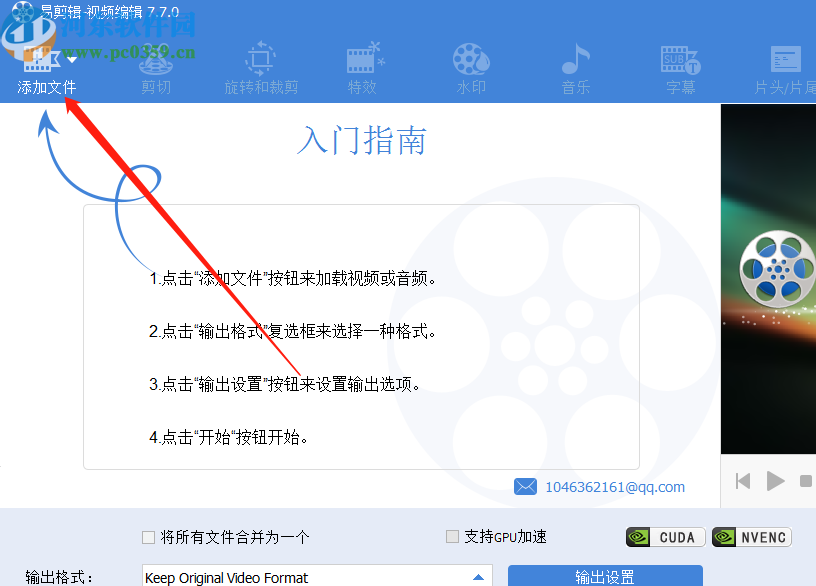 2.进入到视频编辑工具界面之后,我们需要点击界面左上角的添加文件按钮,点击之后添加需要剪切的视频文件。