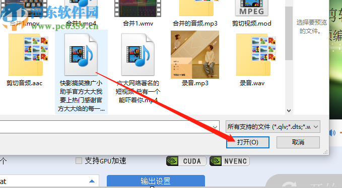 3.点击添加文件按钮之后紧接着就打开选择文件的界面了,然后在界面中我们点击选中目标文件,然后点击打开按钮。