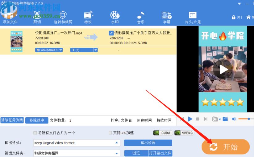 6.最后选择好剪切片段之后,点击界面右下角的开始这个功能按钮就可以开始剪切选取的视频片段了,有需要的朋友不妨试一试小编分享的方法,希望能够对大家有所帮助。