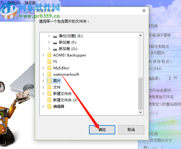 2.点击添加之后紧接着在出现的选择文件界面中,我们选择图片文件所在的文件夹之后点击确定按钮就可以了。