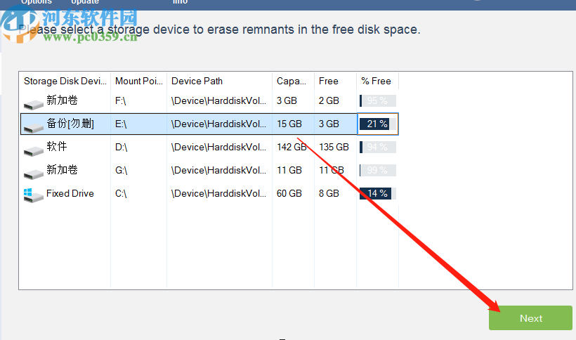 2.然后下一步我们需要选择想要清理释放空间的磁盘,选中之后点击界面右下角的Next这个下一步按钮。