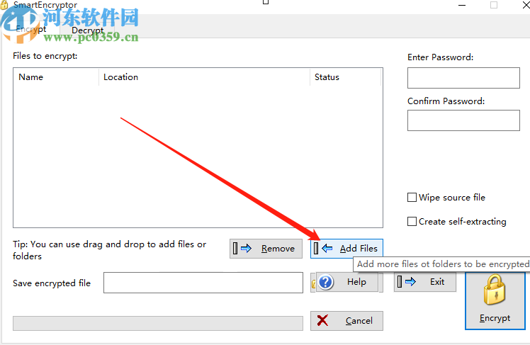 1.首先第一步我们打开软件之后在界面中点击Add Files这个功能按钮,点击这个功能按钮之后添加需要加密的文件。