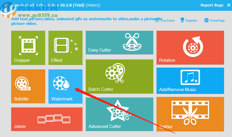 1.首先第一步我们打开软件的主界面之后在界面中找到Watermark这个功能模块,点击进去之后即可进入到添加水印的功能中。