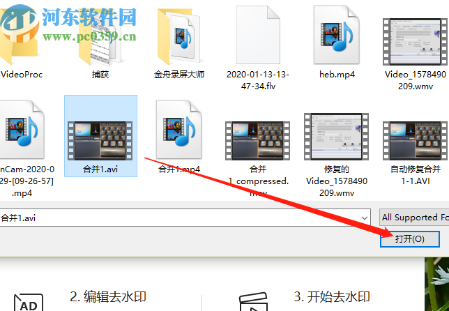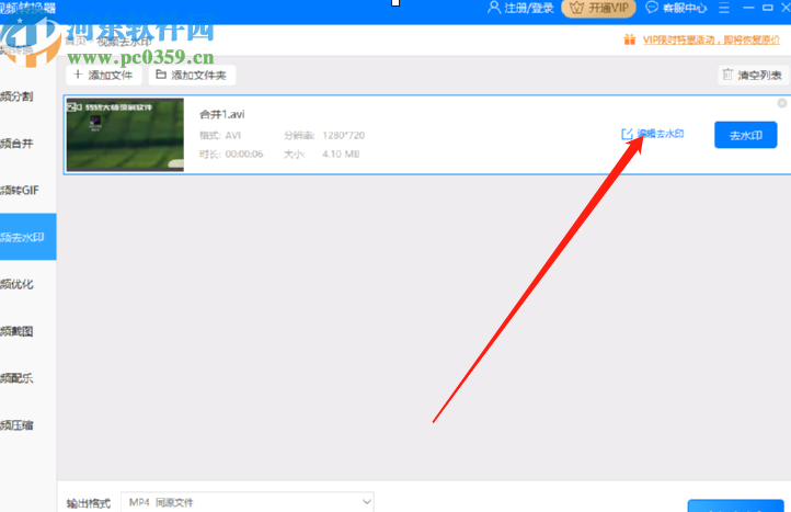 4.点击打开按钮将视频成功添加进来之后,下一步就可以在界面中点击编辑去水印这个功能选项了,点击之后进入到选择水印的功能中。