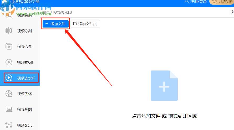2.进入到视频去水印的功能模块之后,我们就可以点击添加文件这个功能按钮来准备添加想要去除水印的视频文件了。