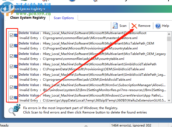 5.等到扫描注册表的操作完成之后,我们在界面中就可以看到一些扫描出来的注册表了,我们勾选这些注册表点击界面右上角的Remove这按钮即可开始清理扫描出来的注册表。