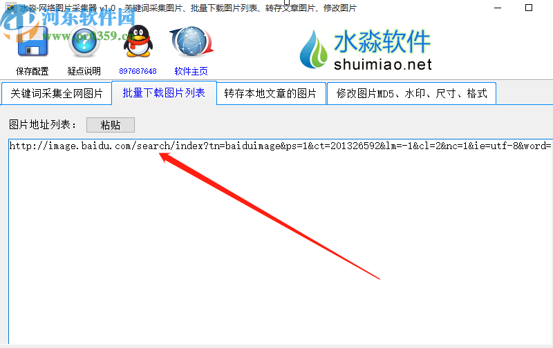 2.切换到这个功能界面之后,我们就将自己想要下载图片的网页链接复制到输入框里面,也就是图片地址列表,有多个链接的话每一行粘贴一个链接即可。