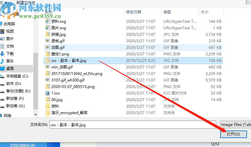 2.点击添加文件按钮之后会打开一个选择文件的界面,在这个界面中我们选中目标图片文件之后点击右下角的打开按钮。