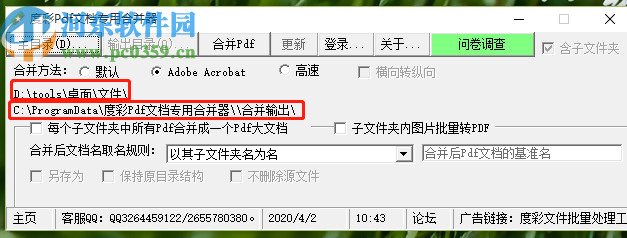 3.点击确定按钮之后我们在软件界面中就可以看到合并文件的目录和文件合并之后的输出目录了,如下图中所示。