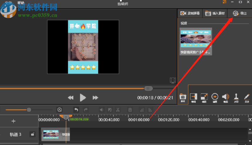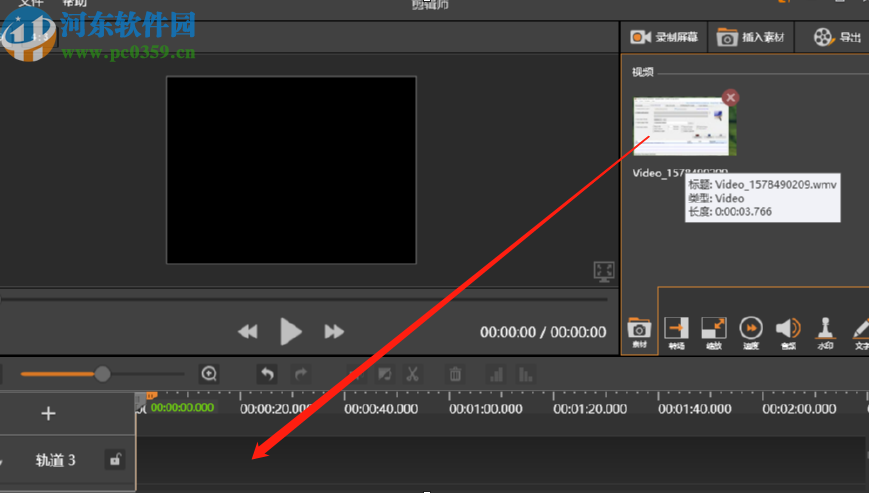 4.点击这个打开按钮之后视频就添加成功了,然后我们需要将它拖动到下方的操作台中进行剪切操作。