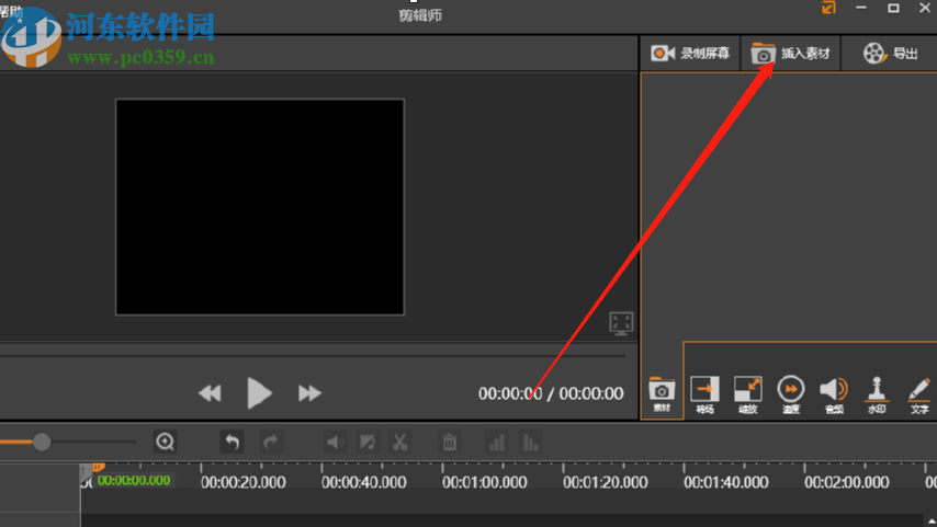2.点击进入到编辑视频的界面之后,我们需要点击界面右上角的插入素材这个功能选项,如下图中所示。