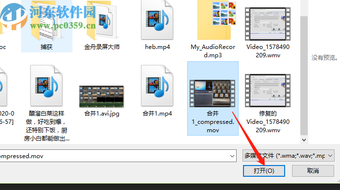 3.点击插入素材之后我们就可以在出现的界面中选择想要剪切的视频文件了,选中目标视频文件之后点击右下角的打开按钮。