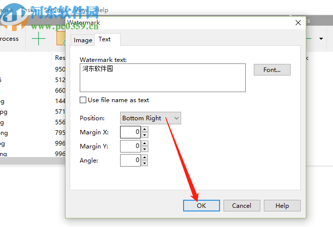 5.设置好水印文字的样式之后,我们可以设置水印在图像中的位置,设置完成之后点击OK按钮即可保存文字水印的相关设置。