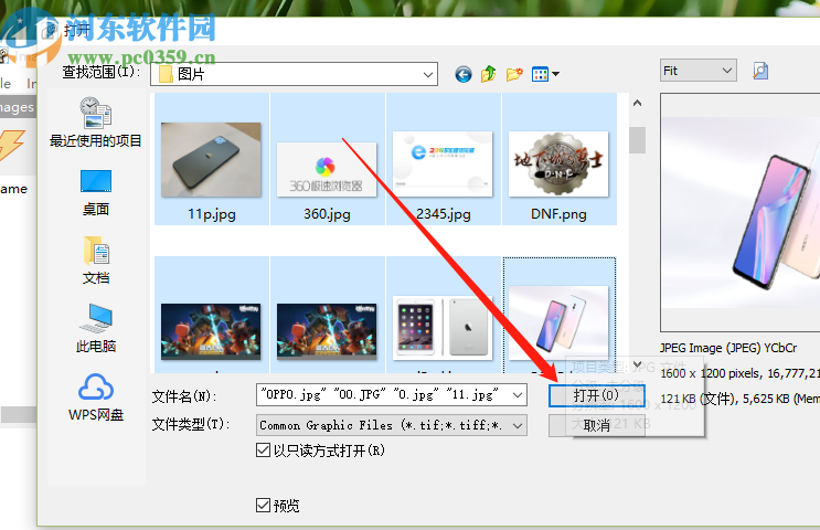 2.点击添加图标之后就会打开选择文件的界面了,在这个选择文件的界面中我们选中所有要处理的图像之后点击打开按钮。