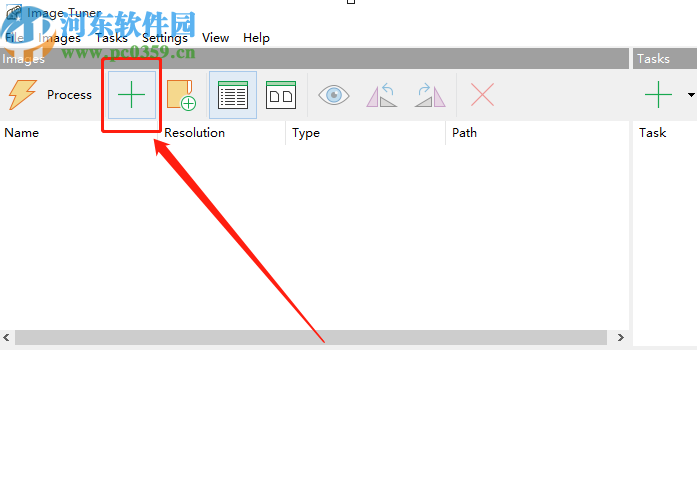 1.首先第一步我们点击打开软件之后在界面中找到加号图标,如下图中所示,找到之后点击它准备添加要处理的图像。