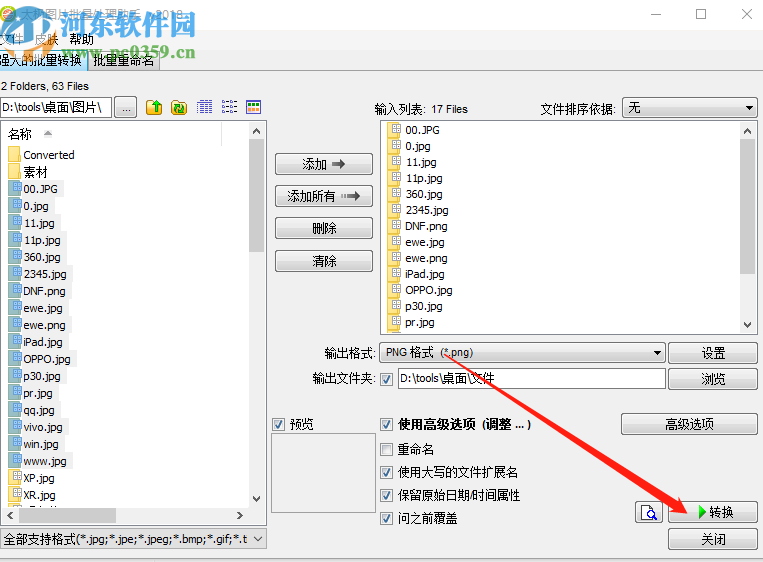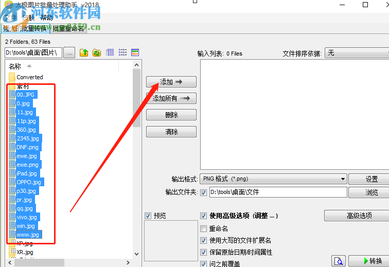 3.点击这个添加按钮之后我们就将选择的图片添加到操作列表当中了,然后下一步就是点击界面右下方的高级选项。