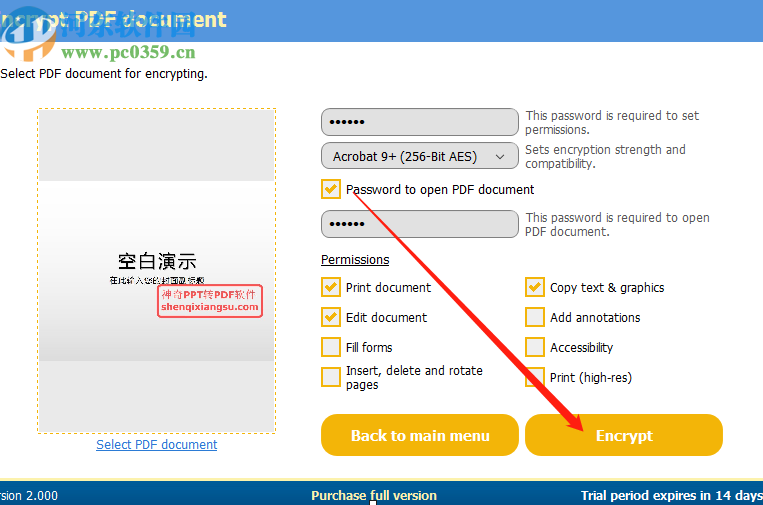 1.首先第一步我们打开软件之后点击Encrypt PDF这个功能模块,然后就可以进入到PDF加密功能界面了。