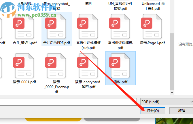 3.点击选择文件之后会打开一个选择文件的界面,我们在这个界面中选中想要加密的PDF文件之后点击右下角的打开按钮即可。