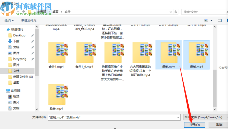 2.点击添加视频之后会打开一个选择视频的界面,在这个界面中我们选中想要合并的视频之后点击下方的打开按钮即可。